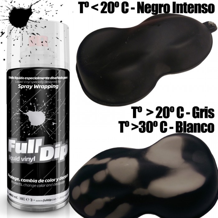 Full Dip thermochromic has the particularity of changing color depending on the temperature, so, below 30 ° colors (orange, black or blue) are shown and above 30 degrees tend to neutralize the color, leaving a semi-transparent color being able even create transparencies with different backgrounds.