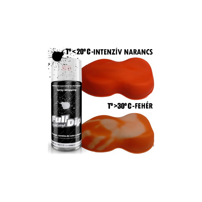 Full Dip Termocromático tiene la particularidad de cambiar de color en función de la temperatura, así pues, por debajo de 30º se mostrarán el color naranja y por encima de 30º tenderá a neutralizarse el color, quedando un color semitransparente blanco pudiendose incluso crear transparencias con diferentes fondos.